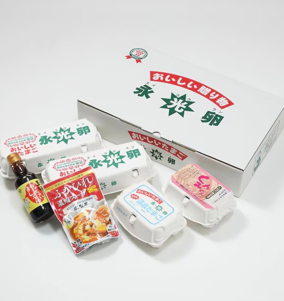 うみたてたまご永光卵と自家製の温泉たまごや生たまご専用醤油付きのバラエティ豊かなセット。